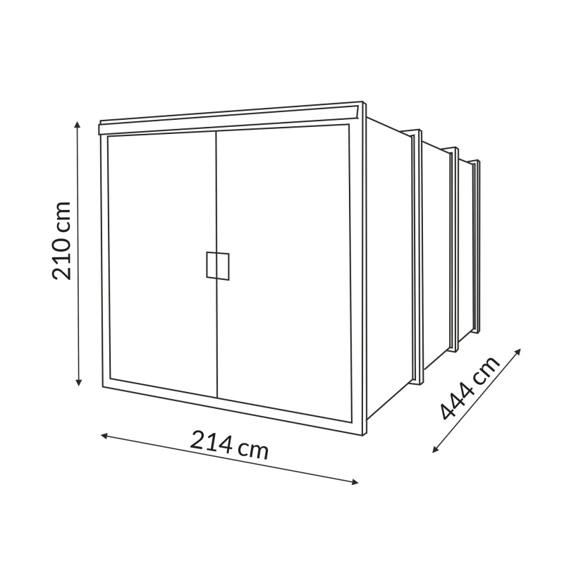 - Drzwi: dwuskrzydłowe, blacha płaska alucynk 0,5 mm. Zawiasy profilowe.