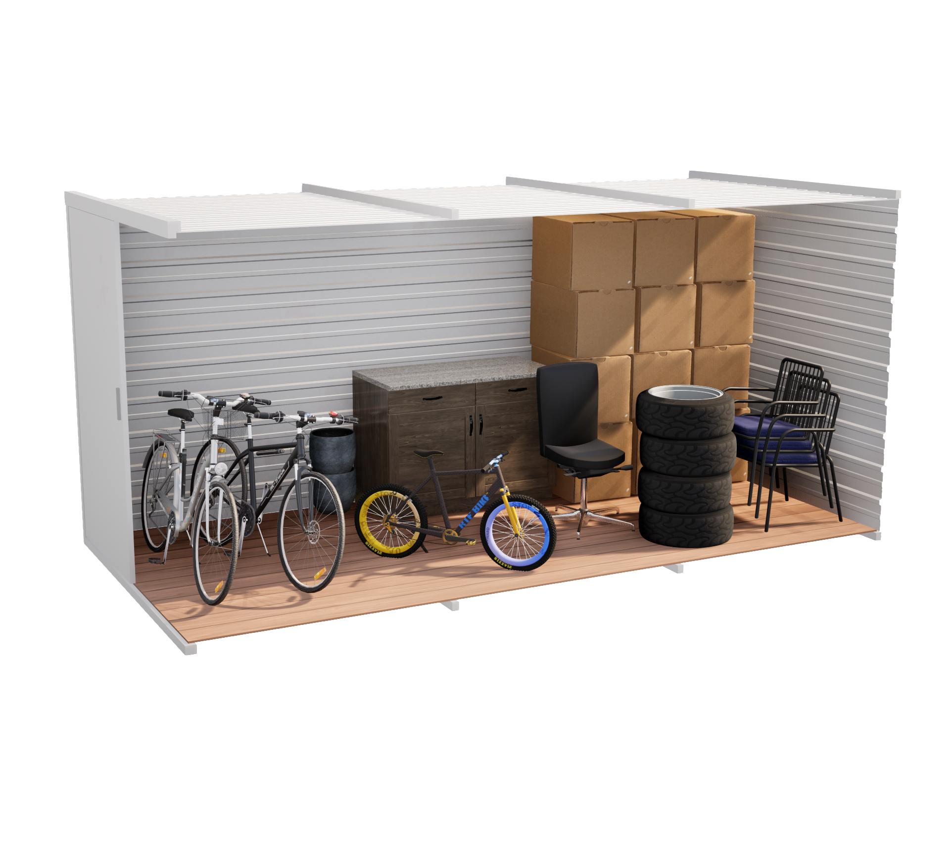- Podłoga kontenera: stalowe profile ocynkowane 60×40 mm(grubość ścianki 2 mm) impregnowana deska strugana pióro – wpust o grubości 32 mm